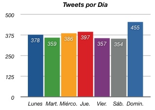 Si ignoro un poco el domingo, soy bastante constante en lo que escribo en Twitter cada día, por cierto, esos son valores totales desde que llevo usando Twitter, que no se asuste ahora nadie pensando que escribo más de 300 entradas cada día.