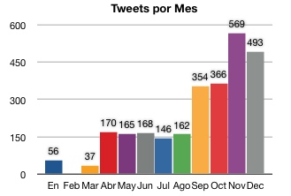 Personalmente me he llevado una sorpresa. De entrada no me acordaba de que comenzará a usar Twitter desde el mes de Marzo, tenía la impresión de que fuera más tarde. Y como son las cosas, tenía la sensación de que los últimos meses usaba menos Twitter, la realidad siempre se empeña en llevarme la contraria por lo que veo.