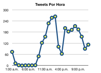 Eduo me da la pista de como hacerlo, simplemente hay que bajarse Twitter Stats, una aplicación hecha en Perl que genera un fichero csv y al mismo tiempo copia todos los valores al porta papeles para ser pegados en Numbers (si estáis bajo Mac OS X), y así ya tenéis las gráficas generadas de forma automática.