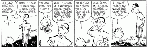 Me encanta. Lo mejor es la actitud ante las preguntas de Calvin que el padre empieza a utilizar después de esto. Las explicaciones que da para que el niño deje de preguntar son a veces más interesantes que las verdaderas 🙂