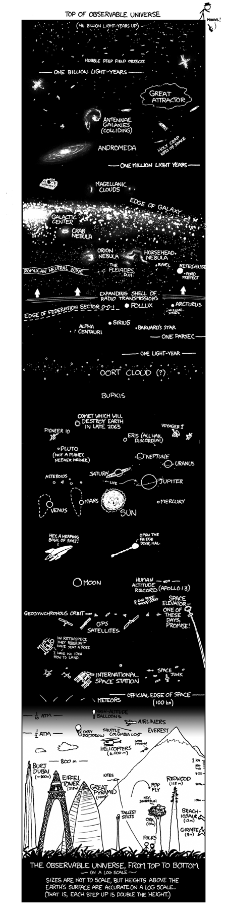El espacio visible en escala logarítmica